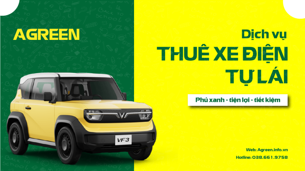 Thuê xe điện tự lái Tại Vinh với Agreen sẽ là một giải pháp tiện lợi di chuyển đảm bảo sự tiện lợi cũng như sức khoẻ của bạn và gia đình bạn.  Với giá cả hợp lý, tiết kiệm hơn xe xăng và thủ tục nhanh chóng. Nếu bạn muốn thuê xe tự lái tại Tp Vinh để phục vụ công việc, di chuyển, chở gia đình đi chơi, đi du lịch hãy liên hệ đến Agreen Dịch vụ Thuê xe điện tự lái